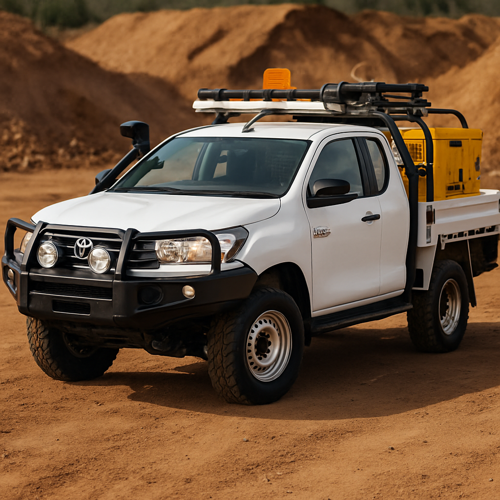 crie agora imagem de caminhonete 4x4 hilux branca toda equipada para mineracao